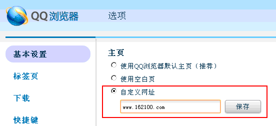 2)然后在打开的对话窗口中选择“自定义网址”并输入“http://408.cn/”,然后点击“保存”按扭即可,如图所示: