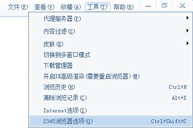 2345浏览器设置主页的方法: 1)首先,打开浏览器上部菜单栏的“工具”栏,在下拉列表中选择“2345浏览器选项”,如下图所示: