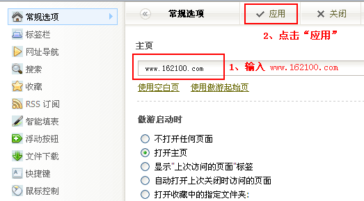 提示:若仍无法设置主页,请点击查看“主页修复”;或“把网址导航-绿色网址-网址之家-网址大全-上网导航下载到桌面” 遨游浏览器