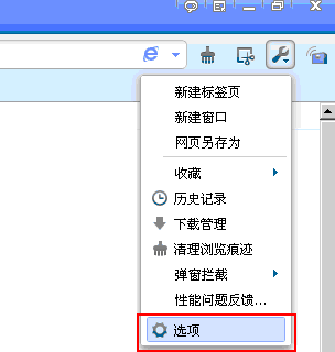 360极速浏览器设置主页的方法: 1)首先,点击右上角的“设置”按钮,在下拉列表中选择"选项",如下图所示: